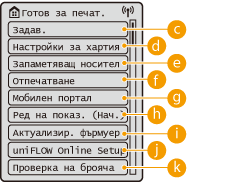 Можете да отпечатвате документи, съхранени в устройството и да проверявате състоянието на задачите за печат.
