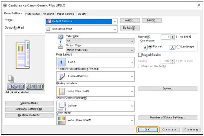 Задайте необходимите настройки за печат и щракнете върху [OK].