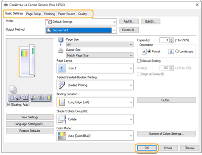 Задайте необходимите настройки за отпечатване и щракнете върху [OK].