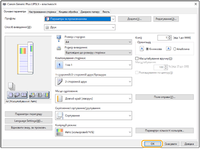 За потреби вкажіть значення параметрів друку, а потім натисніть кнопку [OK].