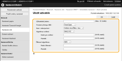 Vyberte [Použít SNMPv3] a nakonfigurujte SNMPv3.