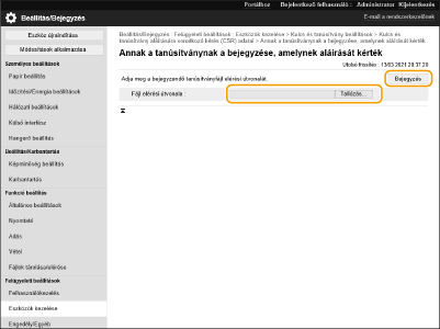 Kattintson a [Tallózás...] lehetőségre, adja meg a bejegyzendő fájlt (tanúsítvány), és kattintson a [Bejegyzés] lehetőségre.