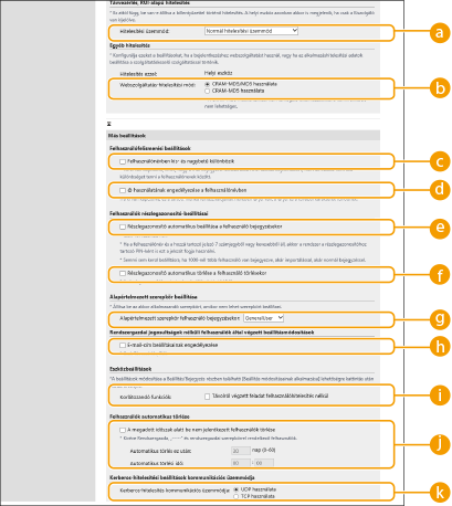 A Távvezérlésről való bejelentkezésnél használandó hitelesítési módot választhatja ki. A [Vendéghitelesítési üzemmód] kiválasztása esetében a [Bejelentkezési hely:] lehetőségre kattintva nem bejegyzett felhasználók is bejelentkezhetnek. Az [Rendszergazdai hitelesítési üzemmód] kiválasztása esetében csak rendszergazdai jogosultságokkal rendelkező felhasználók jelentkezhetnek be.