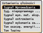 <Syg. niepoprawnego wprow.> | Dźwięk emitowany, gdy naciśnięty zostanie nieprawidłowy przycisk lub gdy wprowadzona zostanie liczba spoza prawidłowego zakresu ustawień. |