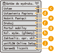 Za pomocą tego przycisku można uzyskać dostęp do różnych ustawień urządzenia, takich jak <Ustawienia Funkcji> i <Właściwości>.