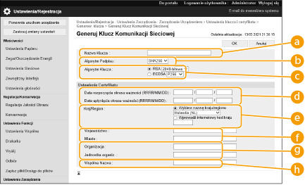 W przypadku wybrania opcji [SHA384] lub [SHA512] dla ustawienia [Algorytm Podpisu] długość klucza nie może być ustawiona na [512-bit.] po wybraniu opcji [RSA] dla ustawienia [Algorytm Klucza].