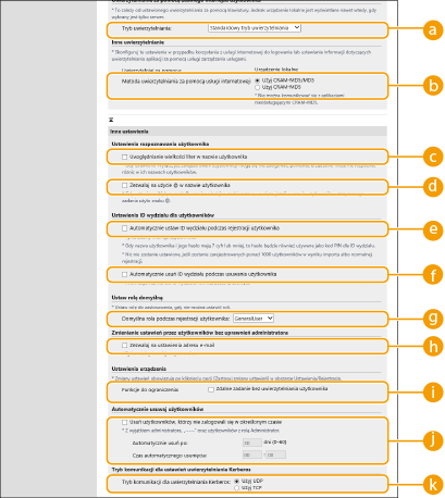 Możesz skonfigurować ustawienia szczegółowe dla funkcji uwierzytelniania.