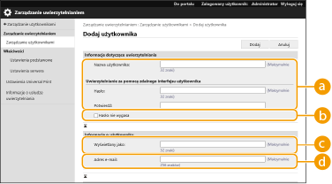 [Nazwa użytkownika:] / [Hasło:] / [Potwierdź:]