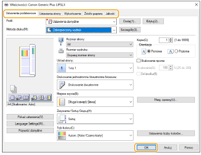 Określ ustawienia drukowania według potrzeb i kliknij przycisk [OK].