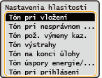 <Tón pri nesprávnom vložení> | Zvuk vydávaný pri vykonaní neplatnej operácie tlačidiel alebo pri zadaní čísla mimo platného rozsahu nastavenia |