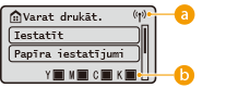 Tiek parādīti tonera kasetņu uzpildes līmeņi. Tie netiek parādīti, darbojoties ekrānā <Sākums>.