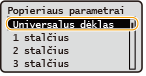 Galite priskirti numatytuosius popieriaus parametrus universaliajam dėklui. Įregistravus numatytuosius parametrus, kaskart į universalųjį dėklą įdėjus tokį patį popierių, nereikės gaišti laiko vėl nurodant parametrus.