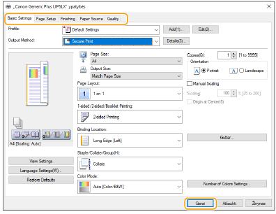 Pasirinkite šio aparato spausdintuvo tvarkyklę ir spustelėkite [Preferences] arba [Properties].