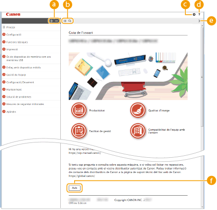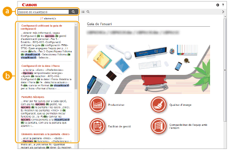 Feu-hi clic per mostrar la informació sobre com veure Guia de l'usuari, com realitzar una cerca i altres informacions.