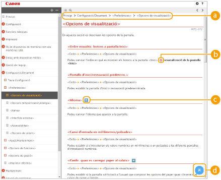 Feu-hi clic per especificar opcions com ara la mida del text, el disseny i el mètode de visualització de la Guia de l'usuari.