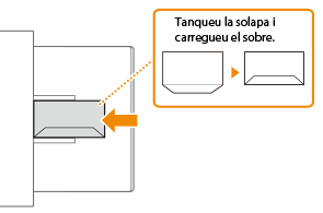 En aquesta secció es descriu la manera com es carreguen els sobres amb l'orientació correcta, a més dels procediments que cal seguir abans de carregar sobres. Per obtenir una descripció del procediment general per carregar sobres a la safata multiús, vegeu Mètode de càrrega de paper bàsic. |
