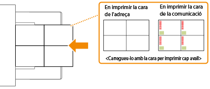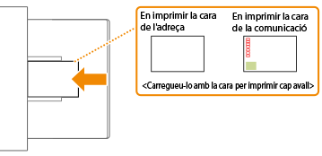 En aquesta secció es descriu la manera com es carreguen les targetes postals amb l'orientació correcta, a més dels procediments que cal seguir abans de carregar les targetes postals. Per obtenir una descripció del procediment general per carregar targetes postals a la safata multiús, consulteu Mètode de càrrega de paper bàsic. |
