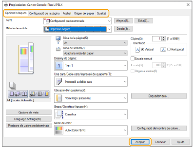 Especifiqueu les opcions d'impressió segons calgui i feu clic a [D'acord].