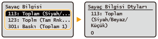 Renkli ve siyah beyaz çıktılar için kullanılan sayfa sayılarının toplamlarını ayrı ayrı kontrol edebilirsiniz. Çıktıların sayısı, bilgisayarlardaki verilerin çıktılarının yanı sıra bellek ortamından alınan çıktıları ve liste çıktılarını da içerir.