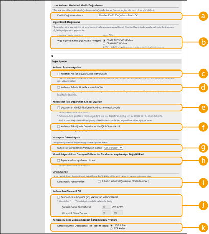 Kimlik Doğrulama Cihazı) belirtin. Aşağıdaki ayarları yapılandırmadan önce kimlik doğrulama cihazlarının ayarlanması gerektiğini unutmayın.
