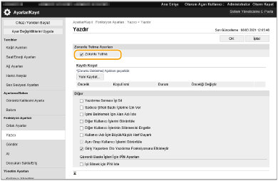 [Giriş Yaparken Oto Yazdırma Fonksiyonunu Etkinleştir] ayarı, [Sadece Şifreli Baskı İşlerine İzin Ver] işaretliyse seçilemez.