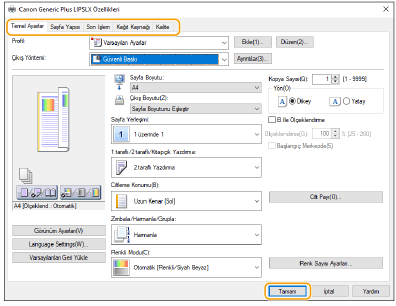Yazdırma ayarları gerektiği gibi belirtin ve [Tamam] öğesine tıklayın.
