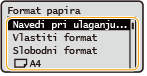 Ako često morate promijeniti papir koji se umeće, postavite na <Slobodni format>; time ćete smanjiti broj koraka potrebnih za promjenu postavke svakog puta. Možete prikazati poruku o pogrešci ako se postavka u upravljačkom programu znatno razlikuje od veličine umetnutog papira. <Form. pap. se razlik. za slob. form.>
