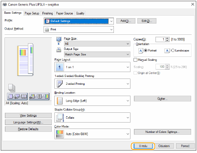 Po potrebi promijenite postavke ispisa, a zatim kliknite [OK].