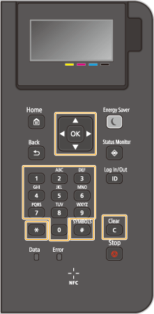 Press or select <Symbol> and press when the type of text that is entered is <A> or <a> to display enterable symbols in the screen. Use / / / to select the symbol you want to enter, and press . |