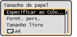 Se você precisa mudar o papel a ser carregado, defina para <Tamanho livre>; isso reduzirá o número de etapas necessárias para mudar a definição a cada vez. Você também pode exibir uma mensagem de erro quando a definição no driver da impressora for muito diferente do tamanho de papel carregado.