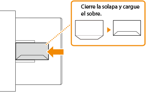 Esta sección describe cómo cargar sobres en la orientación correcta, así como los procedimientos que debe seguir antes de cargar sobres. Para obtener una descripción del procedimiento general para cargar sobres en la bandeja multiuso, consulte Método básico de carga de papel.