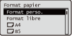 L'écran permettant de spécifier le format et le type de papier s'affiche.