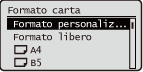 Se è necessario cambiare frequentemente la carta da caricare, impostare su <Formato libero>; ciò ridurrà il numero di passaggi necessari per modificare l’impostazione ogni volta. È inoltre possibile visualizzare un messaggio di errore quando l’impostazione nel driver della stampante è notevolmente diversa dal formato della carta caricata.