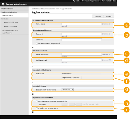 dc | No | Da 0 a 32 caratteri | Caratteri di controllo | - (N/D) | Impossibile modificare. Viene assegnato automaticamente per i seguenti utenti. Utenti registrati tramite autenticazione server |
