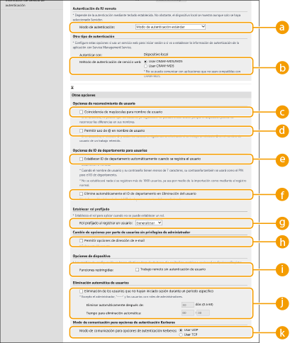 Puede configurar las opciones detalladas de las funciones de autenticación personal.