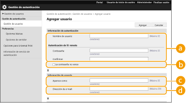 [Nombre de usuario:] / [Contraseña:] / [Confirmar:]