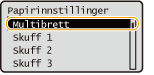 Du kan lagre standardpapirinnstillinger for multibrettet. Ved å lagre standardinnstillinger, trenger du ikke å angi innstillingene hver gang du legger papir i mulitbrettet.