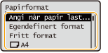 Hvis du ofte trenger å endre papiret som skal legges i, angi <Fritt format>; dette reduserer antall trinn som kreves for å endre innstillingen hver gang. Du kan også vise en feilmelding når innstillingen i skriverdriveren er betydelig forskjellig fra størrelsen på det ilagte papiret.