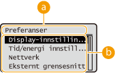 Når det ikke finnes en meny under det laveste nivået, vises innstillingsskjermbildet.