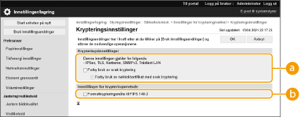 [Innstillinger for kryptering/nøkkel].