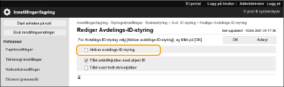 Velg [Aktiver avdelings-ID-styring].