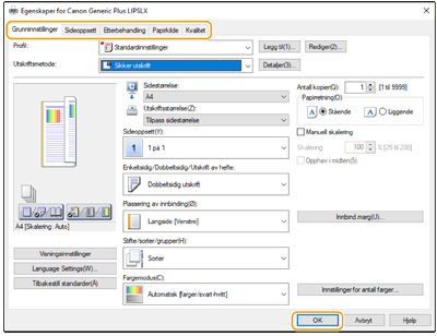 Angi utskriftsinnstillingene etter behov, og klikk på [OK].