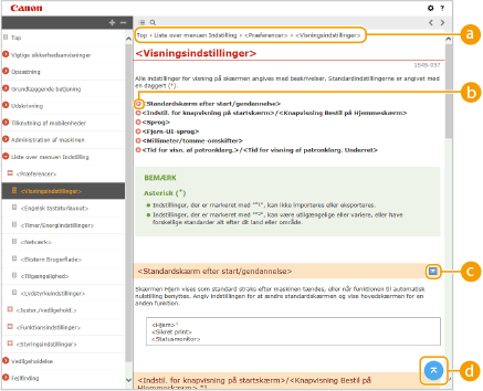Klik for at angive indstillinger som f.eks. tekststørrelse, layout og visningsmetode for Brugervejledning.