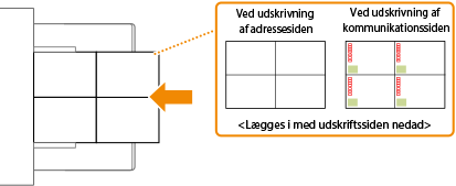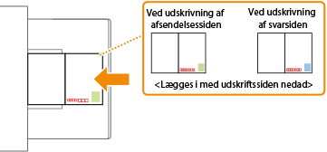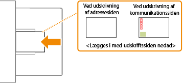 I dette afsnit beskrives, hvordan du ilægger postkort i den ønskede retning, samt de fremgangsmåder, du skal udføre, før du ilægger postkort. For en beskrivelse af den generelle fremgangsmåde ved ilægning af postkort i universalbakken kan du se Grundlæggende metode ved ilæggelse af papir. |
