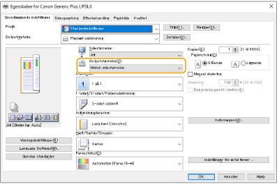 Match [Output Size] i printerdriveren med formatet på det papir, der skal printes på.