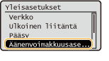 <Tehonsäästö/Uniääni> | Äänimerkki kuuluu, kun laitteeseen kytketään virta tai siitä katkaistaan virta, kun asetat <Pikakäynnistyksen asetukset päävirralle> -asetukseksi <Kyllä>. (Tilanteesta riippuen laite ei ehkä pikakäynnisty, jolloin merkkiääntä ei kuulu.) |