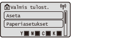 Valitse <Näyttöjärj. (koti)>, jos haluat mukauttaa <Päävalikko>-näkymää järjestämällä painikkeet uudelleen. Näytön mukauttaminenVoit muuttaa näyttöön liittyviä asetuksia, esim. mikä näyttö avautuu heti laitteen käynnistyttyä, ja näytetäänkö jäljellä olevaa paperin ja väriaineen määrää koskeva viesti. <Näyttöasetukset> |