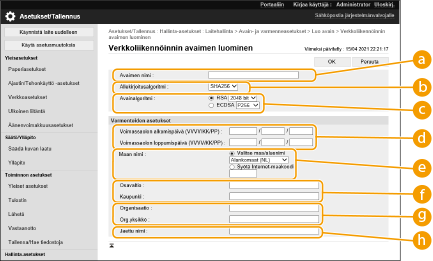 [Avaimen nimi]Syötä aakkosnumeeriset merkit avaimen nimeämistä varten. Aseta nimi, jonka löydät myöhemmin luettelosta helposti.