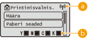 Kuvatakse toonerikassettide tooneritasemed. Neid ei kuvata ekraanil <Avakuva> töötades.