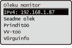 (Olekumonitor), kuvatakse kuva <Oleku monitor>. Sellel kuval saate vaadata printimise olekut ning teavet järelejäänud tooneri ja paberi koguse kohta.